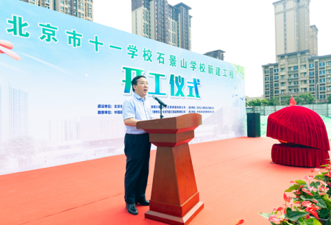 北京市十一学校党委书记、校长田俊祝贺项目正式开工,他表示,在区委区政府各级领导和社会各界的关心和支持下,石景山学校一定能够建设成为学生健康成长、老师幸福工作的好学校,让更多的孩子们在家门口就能享受到优质的教育资源。